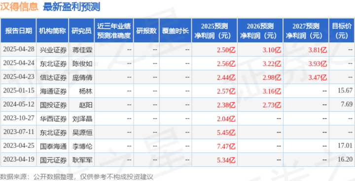 最新盈利预测明细如下: